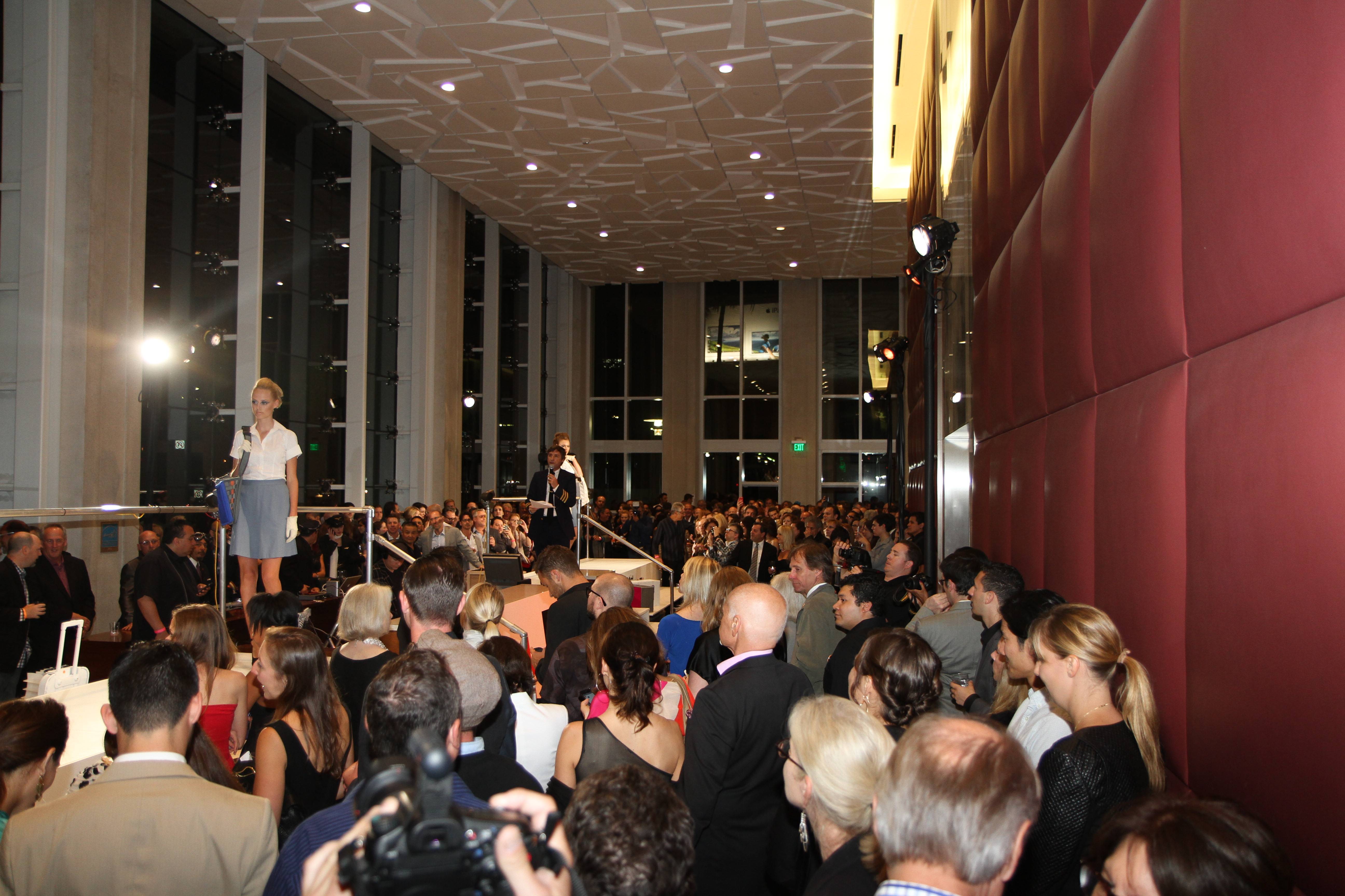 Emcee and actor Boise Thomas guided attendees through the event dressed as a pilot, and was accompanied by flight attendant-clad models. DJ Raul Campos from radio station KCRW filled the chic ground floor space of the 5900 Wilshire building with tunes until the last auction item left the room.