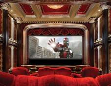 According to ElectronicHouse.com, the 45-seat cinema took four years to complete and cost the homeowner more than $3 million. The spectacular room was inspired by a small piece of red fabric and transformed into an 8,000-square-foot addition to the large 25,000-sqaure-foot home. The goal of building the theater was “to design an environment as luxurious as that swatch of material,” the homeowner told ElectronicHouse.com. Designed by Laguna Beach-based designer Slayman Cinema, the room’s equipment had to match the sophisticated design.