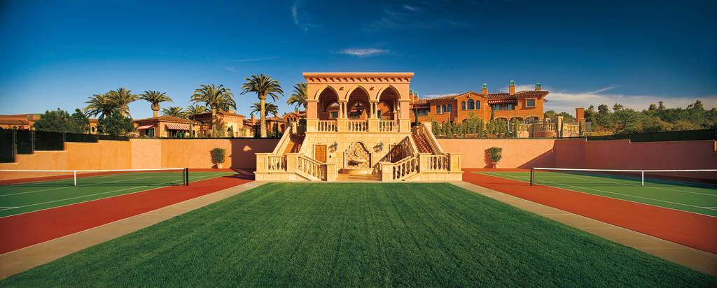 You can get lost on the grounds, which are punctuated with fountains, courtyards, patios and Mediterranean structures as designed by Robert Altevers.