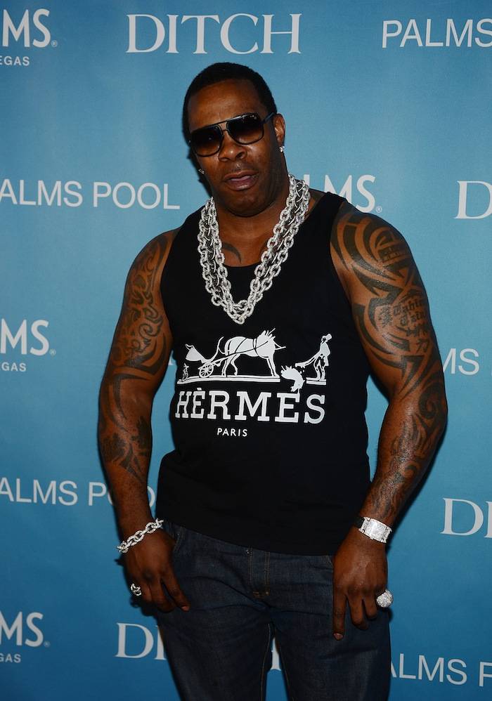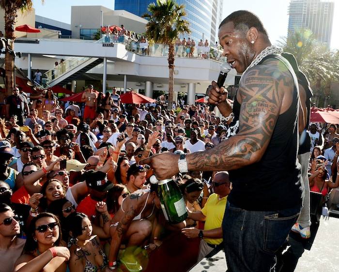 Hip hop legend Busta Rhymes launched the return of “Ditch Weekend” in style at Palms Pool at the Palms on Friday afternoon. Sporting black Louis Vuitton aviator sunglasses, a Black Hermès tank top and jeans, the Grammy-nominated artist stopped to chit-chat about the Mayweather-Guerrero fight before heading into the packed hot spot.