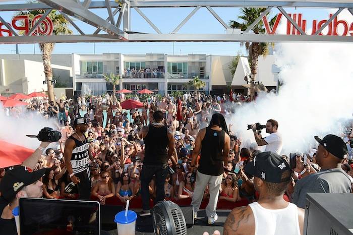 The celebration ignited when the artist sprayed fans with Moët & Chandon champagne while performing his brand new club banger, “Twerk It.” Gorgeous bikini-clad guests rushed to the stage to show off their hottest dance moves, with Busta inviting a few lucky ladies up.