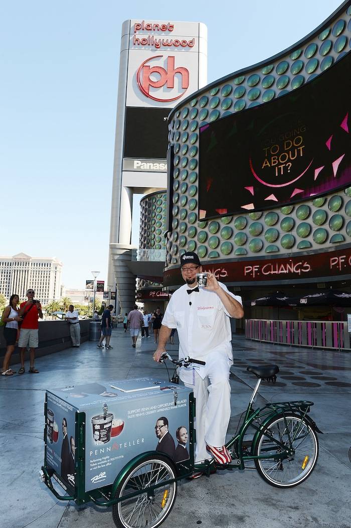 During last night’s broadcast of NBC’s “All-Star Celebrity Apprentice,” Rio headliner Penn Jillette was named one of two finalists left in the competition. For the final challenge Penn was tasked with creating his very own flavor of Walgreens Good & Delish super premium ice cream. His creation, “Vanilla & Chocolate Magic Swirtle,” was launched this morning at an ice cream social at the Walgreens in the middle of the Las Vegas Strip. A combination of premium vanilla and chocolate ice cream mixed with salted caramel swirls and pieces of delicious chocolate, Penn’s special flavor will be sold at Walgreens and Duane Reade locations across the country beginning Monday, May 13. Walgreens will award $100,000 to Opportunity Village, the Las Vegas-based charity for which Penn has been playing, if he sells more ice cream than his competitor this week. The ice cream sales will also help determine who is ultimately named the All-Star Celebrity Apprentice, which would award an additional $250,000 to Opportunity Village.