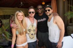 NBA Clippers player Chris Paul was also spotted at the daytime party with friends in a cabana as was “Breaking Bad” actor Aaron Paul, who celebrated a joint bachelor and bachelorette party with wife-to-be Lauren Parsekian and friends. Aaron and Lauren soaked up the sun and snacked on items from the grill menu before making their way to say hi to Chris and his group.
