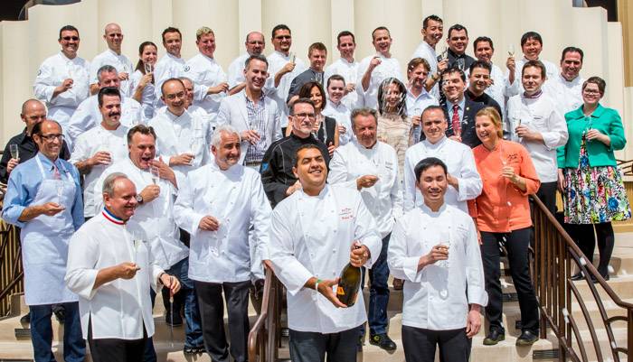 Acclaimed chef Michael Mina did the official honor, taking a saber to a magnum bottle of Mionetto Prosecco in front of the iconic 100,000-pound bronze lion statue at the MGM Grand on Thursday. Joining him in what’s become an annual tradition kicking off the celebrated festival were dozens of top culinary icons including Francois Payard, Frank Pellegrino Jr., Guy Savoy, Ho Chee Boon, Jean-Georges Vongerichten, Joel Robuchon, Julian Serrano, Mary Sue Milliken and Rick Moonen representing Bellagio, Caesars Palace, Mandalay Bay and MGM Grand.
