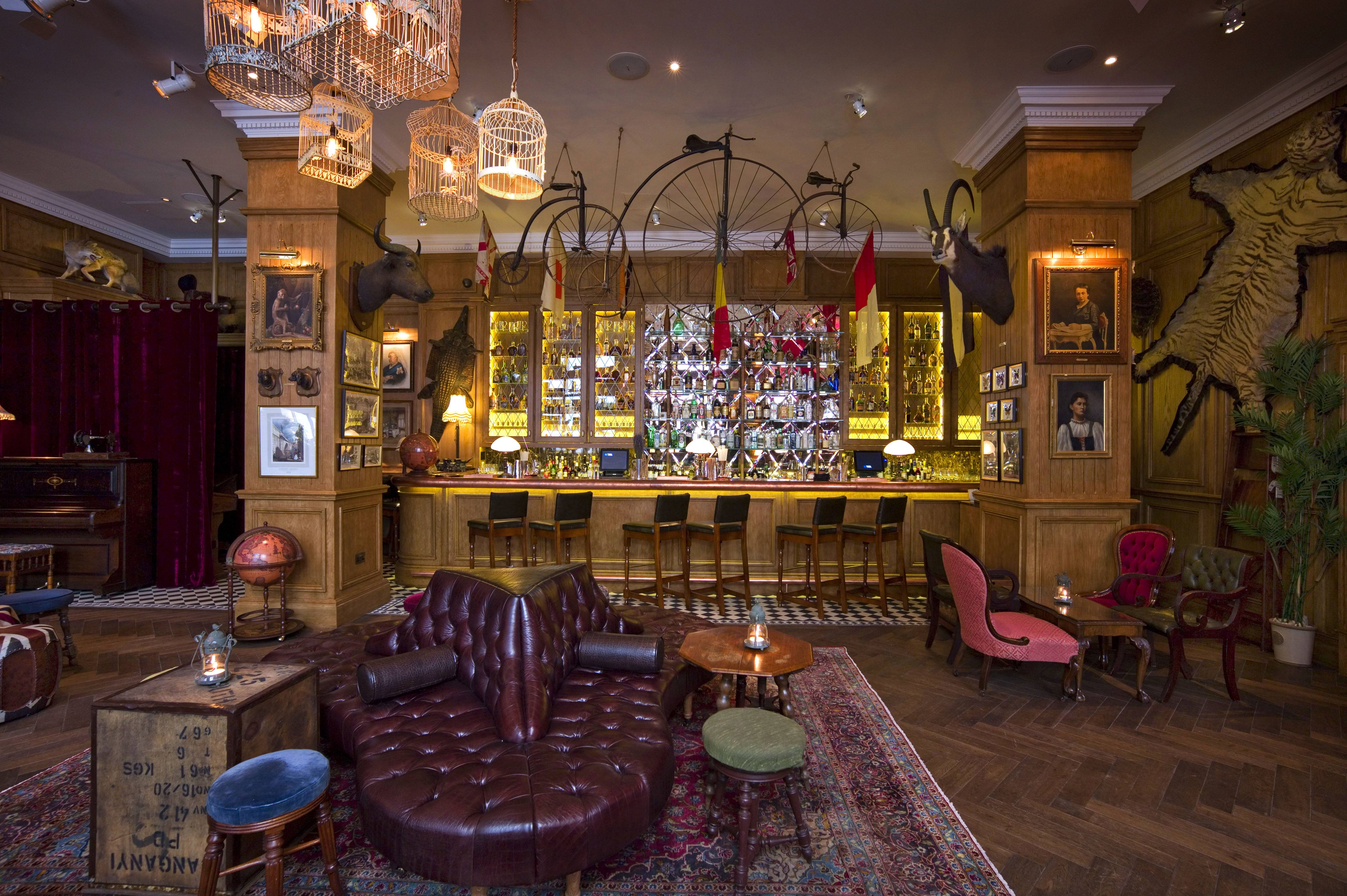 Tucked away down a side street near Berkeley Square, only a small plague with Victorian lanterns mark the entrance. Once inside, the fun really begins. Staff is outfitted in vintage-looking military-style uniforms created by pre-eminent English tailors Gieves & Hawkes. And the décor is exactly as you would expect, laden with trinkets and souvenirs collected on Fogg’s travels — everything from stuffed tigers to maps and, of course, a collection of clocks as Mr Fogg was a stickler for punctuality.