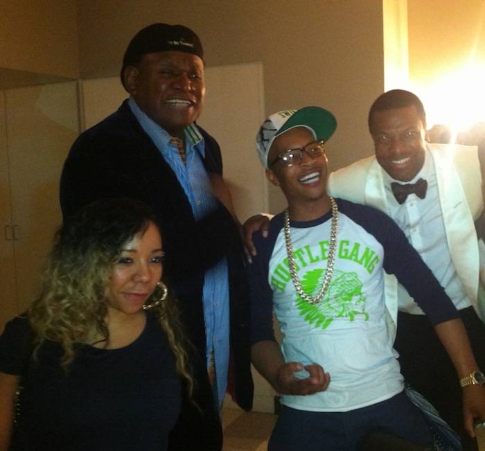 Comedian George Wallace was in attendance and caught up with Tucker along with rapper T.I. and his wife Tiny backstage at the Pearl following the show.