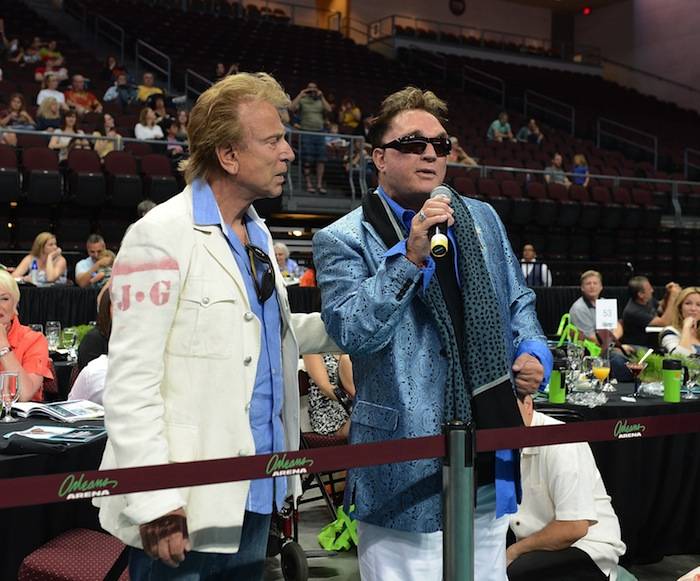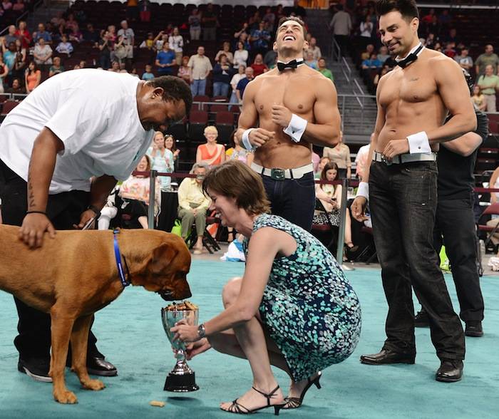 Longtime supporter of The Animal Foundation Holly Madison presided over the Special Needs category, which featured two unique tripod dogs seeking adoption. The new mom wowed in a colorful floral dress and strappy pink Charlotte Olympia shoes propped by mini poodle heels. Backstage, the blonde bombshell posed for photos with contestants from the Puppy Parade category while greeting fans. Siegfreid and Roy also stepped on stage where they were honored for their steadfast commitment to animals of all sizes and species as well as their vast contributions to The Animal Foundation’s community mission.