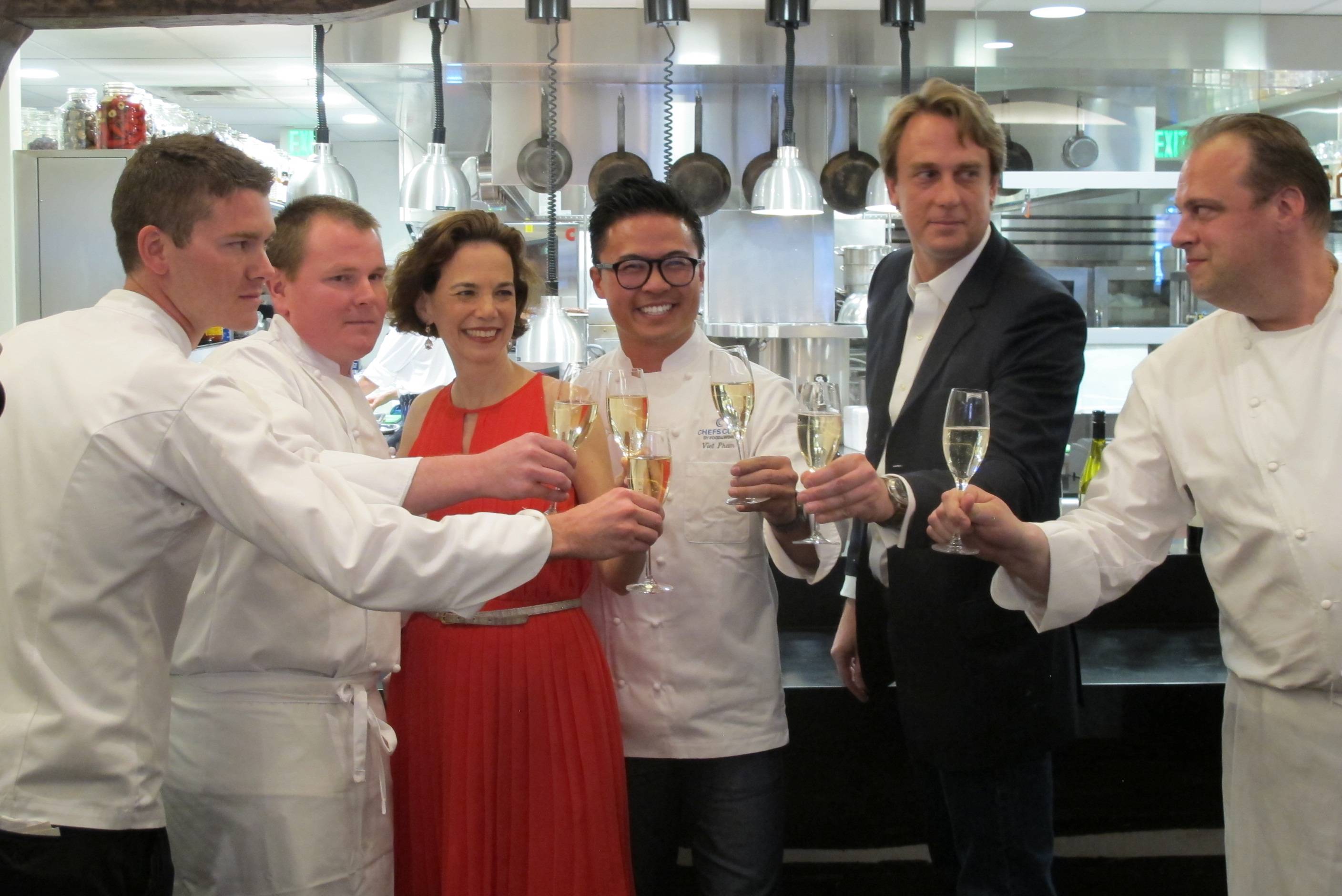 Jason Franey (Canlis), Food & Wine Editor-in-Chief Dana Cowin, Viet Pham (Forage), Stephane De Baets (principal) and Chef Didier Elena cheers to another season.