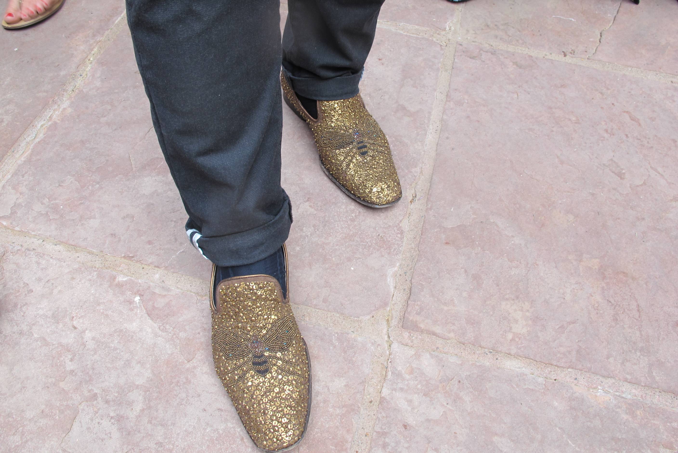 Jonathon Sawyer, a Best New Chef in 2010, shows off his Donald Pliner shoes, which he received in a slippers-for-supper swap