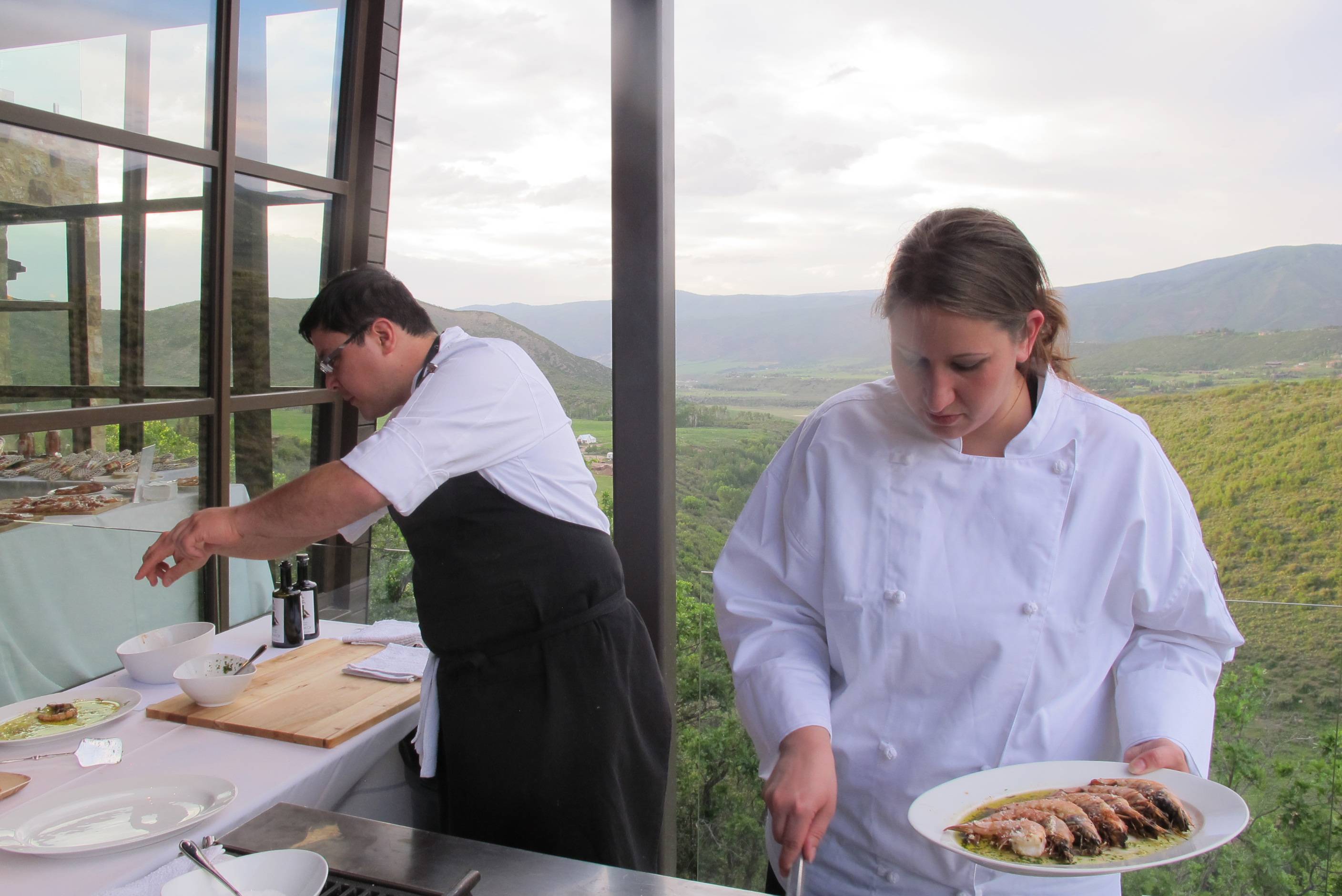 Chefs prepare fresh Gulf shrimp from Louisiana at the Wines of Spain house on West Buttermilk.