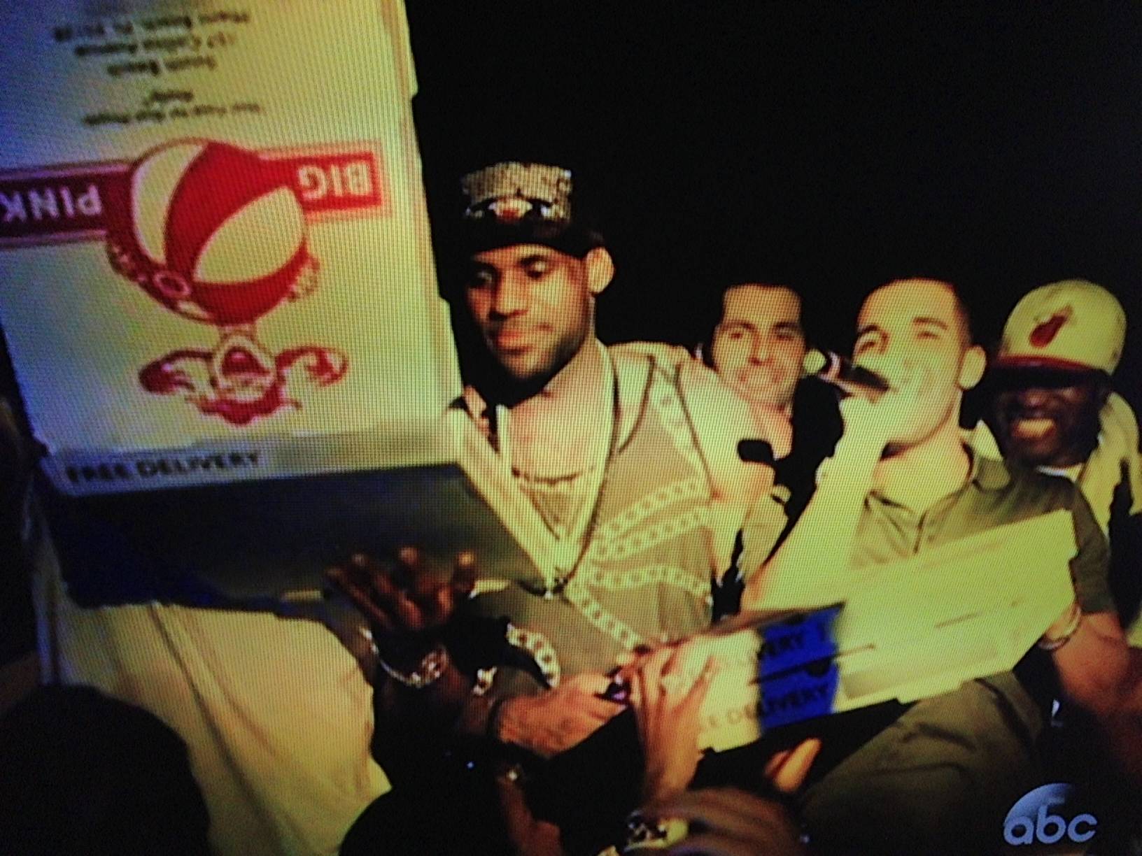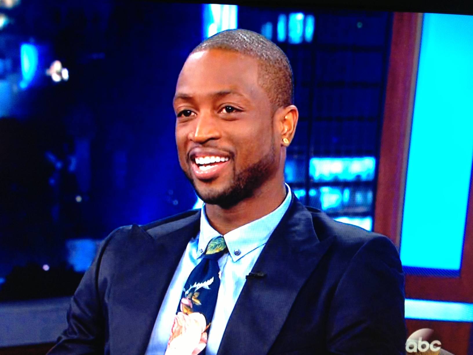Miami Heat star and three time NBA Champion Dwyane Wade guested on Jimmy Kimmel Live last night. The champ was relaxed and humorous as Kimmel showed a photograph of the team diving into a Big Pink pizza at Story nightclub after their win. He also showed a highlight reel of Wade’s son, Zaire, shooting hoops with aplomb. “He would have whooped me at that age,” explains Wade proudly of his son. “He has more talent than I had in 5th grade. BUT around 6th grade… I was nice. So we’ll see.” Kimmel, and Wade had a good laugh noticing in the reel that Zaire was wearing LeBron Nikes and not Wade’s.