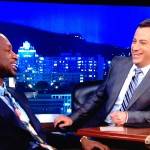 Kimmel praised Wade for his sartorial style. He and Wade agreed the whole team dressed very well. When Kimmel plied who was the worst dressed, Wade gave up his teammate. “I love this guy, but we have to try to work on Ray Allen a little bit. Ray is coming from Milwaukee, Seattle and Boston and Miami is a different culture. He came in with these big , baggy suits and we’re like, ‘Ray, you gotta tailor down a little bit.’” Wade says he got Allen in a tailored suit once and it only lasted one night, “He was so uncomfortable he went back to his big suits.” To that Kimmel quipped, “Well, have him traded. Simple as that.” Dream on Kimmel – Allen isn’t going anywhere.