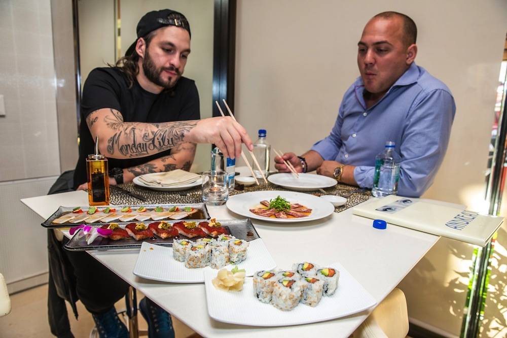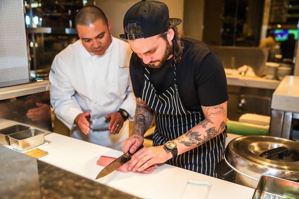 The Wynn Las Vegas resident DJ of Swedish House Mafia fame is the “musical chef” at Andrea’s, where he curates sounds for early dining, mid-evening and late-evening at the hip and modern vibe dining spot. After his Encore Beach Club set on Saturday, Angello freshened up and joined Andrea’s executive chef Joseph Elevado in the kitchen to learn how to make Hamachi Sudachi, Big Eye Crispy Tuna and Steamed Sea Bass among other inspired Asian dishes.