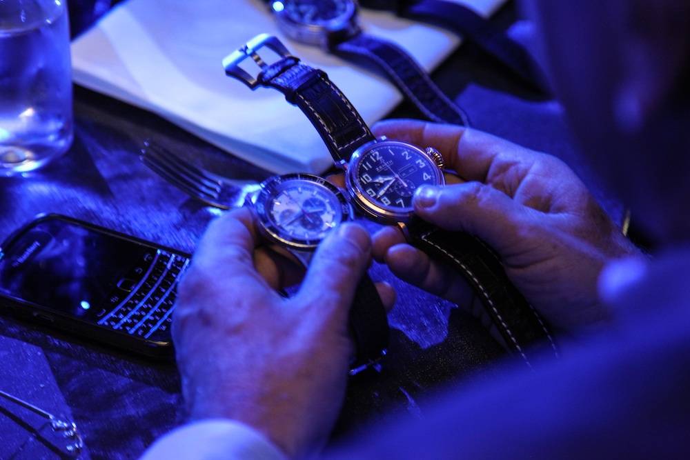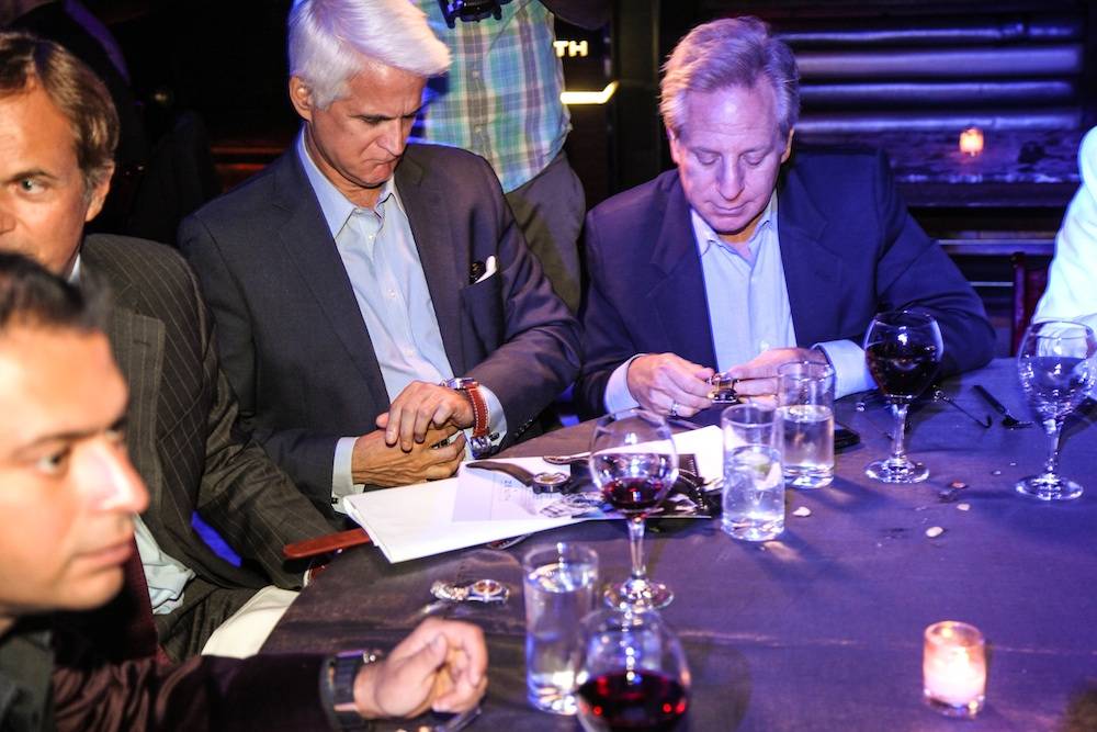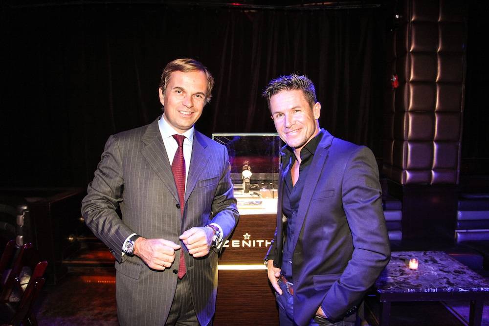 At the event, hosted at Lavo, 30 VIP guests were invited to mingle and get an exclusive look at Zenith’s new pieces from Jean-Frederic. The highlight of the evening was the opportunity for guests to meet and shake hands with Baumgartner himself. For the event, Zenith Watches took over the entire Lavo club in order to host the private dinner. During the event, guests admired several Zenith timepieces, including the outstanding Zenith Academy Christophe Colomb Hurricane. Guests included Stewart Rahr, Benny Shabtai and his wife Stacey, Haute Time publishers Seth Semilof and Kamal Hotchadani, Empire CLS CEO David Seelinger, Ed Mermelstein, Robert and Alisa Roever, Paul and Jane Schindler, Paolo Zampolli, Michael Kay, Elias Sacal, and Olga Krutoy.