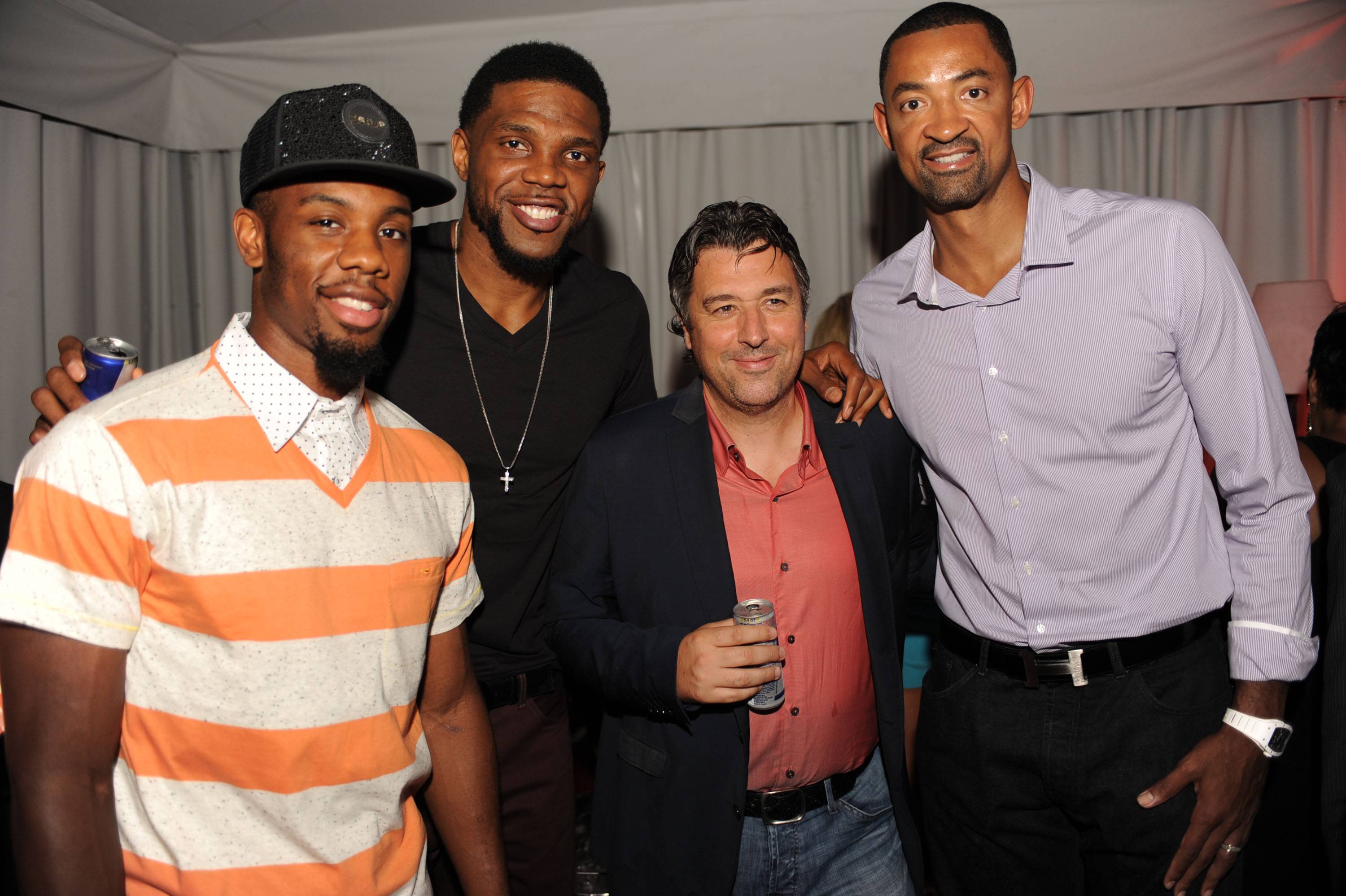 Heat players Udonis Haslem, Norris Cole, and Jwan Howard came out to DJ Irie’s Irie Weekend Kickoff party with deluxe watch sponsor, Hublot. The party took place at Hyde Beach at the SLS and was packed with revelers out to support the popular DJ’s charitable weekend. Today the events continued with a celebrity golf tournament at Miami Beach Golf Club and late night party tonight a LIV. Tomorrow Irie Weekend events will wind up with a bowling event at Lucky Strike and Closing Party at Mokai.