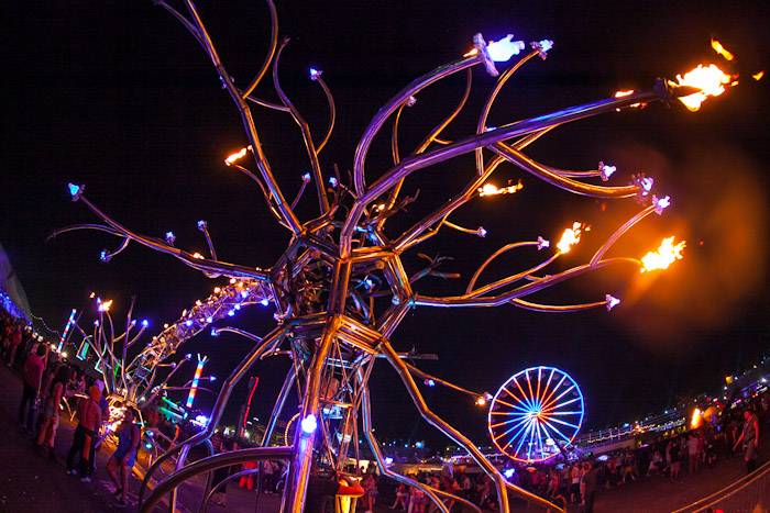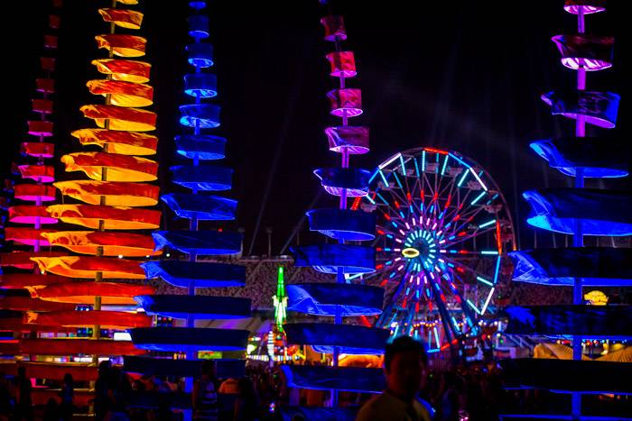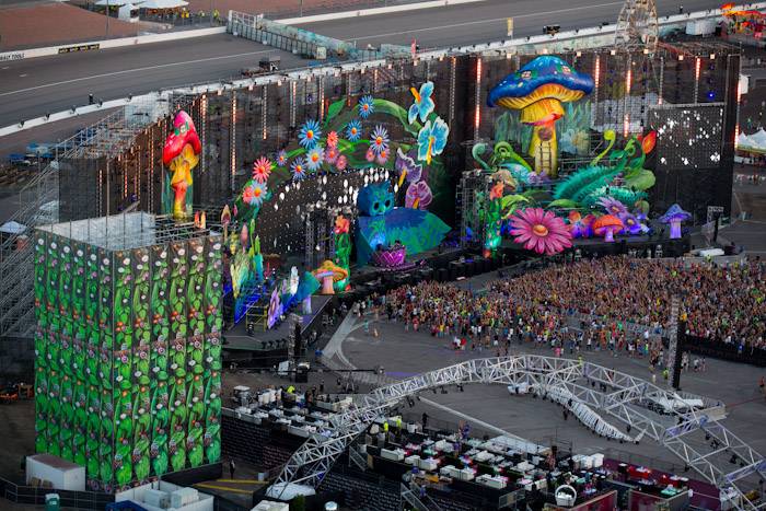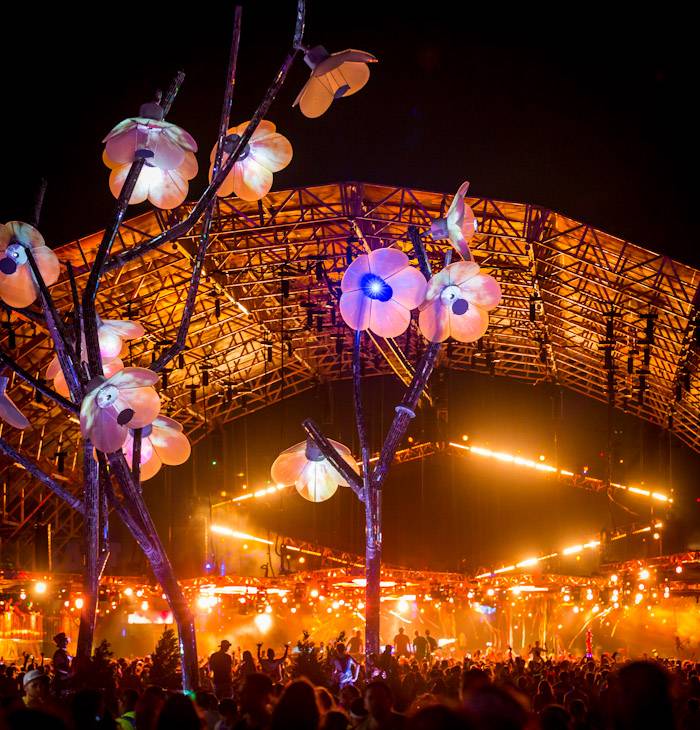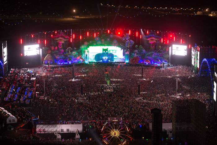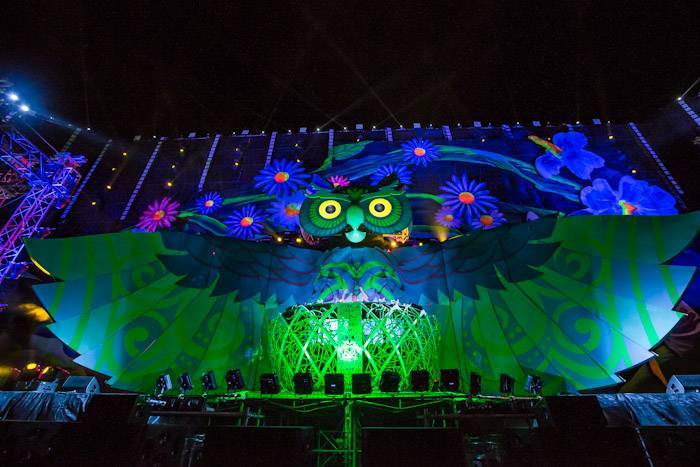This year’s Kinetic Field stage featured a 100-foot tall owl with animated wings surrounded by towering mushrooms and whimsical daisies. Tonight’s photos also include images of Insomniac’s unparalleled fireworks display and amazing production at the additional six stages.