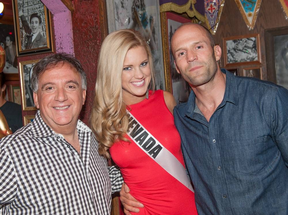 The pageant beauties were at Buca for their annual welcome dinner and were eating Buca’s famous half-pound meatballs when Statham arrived.