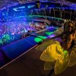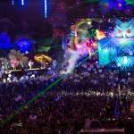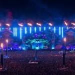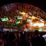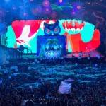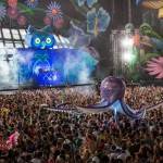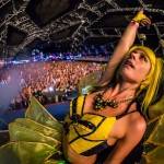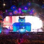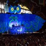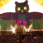 An estimated 80,000 fans gathered at Kinetic Field for the Night Owl Experience, a brainchild of Insomniac CEO and founder Pasquale Rotella. Incorporating unique audiovisual elements and special effects, a theatrical cast took over the stage alongside the 100-foot tall owl while hundreds of glowing beach balls dropped from the sky and a spider’s web crawled over the sea of fans dancing below.