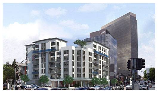 The 78-unit building, courtesy of realtor California Landmark, sits on the northeast corner of Wilshire and Barrington.