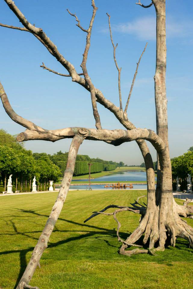 The artist began his career not at an easel or in the studio, but rather in the chestnut forest of Garessio near the Italian town where he was born. Penone creates sculptures by carving tree trunks, leaving the knots in place until they emerge as limbs, revealing the sapling within. As a result, Penone has been linked to the movement known as Arte Povera which defied the traditional conventions of what comprised an artist’s tools or works. Penone’s goal is to establish a connection between us and nature. Fittingly then, Penone’s works are not on display inside Versailles. Unlike the ironic self-portrait Koons put on display in the Chambre du Roi, Penone was been commissioned to create tree sculptures in Versailles’ famous gardens.