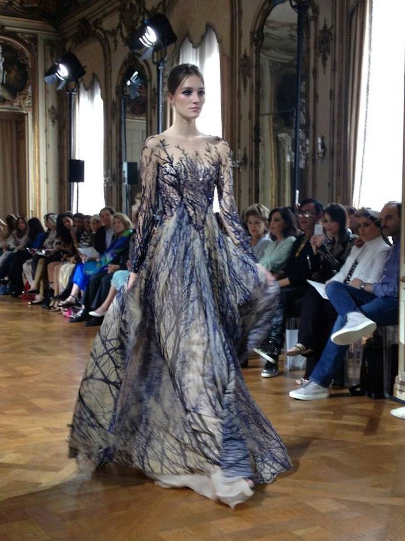 Wander into Giambattista Valli’s dreamy promenade of porcelain and chinoiserie inspired dolls. Romanticize with Armani Prive’s sheer Old Hollywood sensuality. Journey through Zuhair Murad’s enchanted winter’s night dream in an icy forest. Experience Jean Paul Gaultier’s fantastical Femme Fatale with looks fittingly entitled “Catwoman,” “Kill Bill,” and “Cruella de Ville.” Marvel at Elie Saab’s Ceremonie Royale of dancing crown jewels. Enjoy Ulyana Sergeenko’s luxury time travel into a regal Russia and Alexis Mabille’s playdate with 19th Century Italian painter Giovanni Boldini’s masterful brushstrokes. Finally, see Christian Lacroix’s homage to Elsa Schiaparelli in an elaborate exhibition held inside Pavillon de Flore of the Musee des Arts Decoratifs.