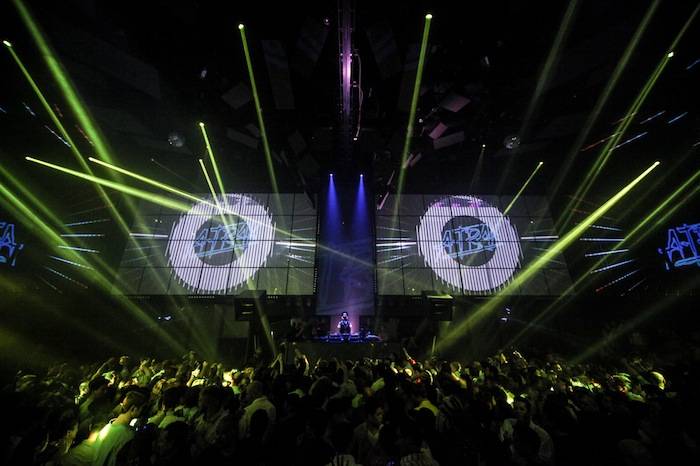 A-Trak led the party on Saturday night, spinning an eclectic mix of mash-ups, remixes and singles. Partiers cheered as A-Trak jumped up on the decks as Cirque du Soleil performers flew through the air above. The crowd was full of familiar faces, with plenty of celebs coming in to check out the Strip’s newest club.