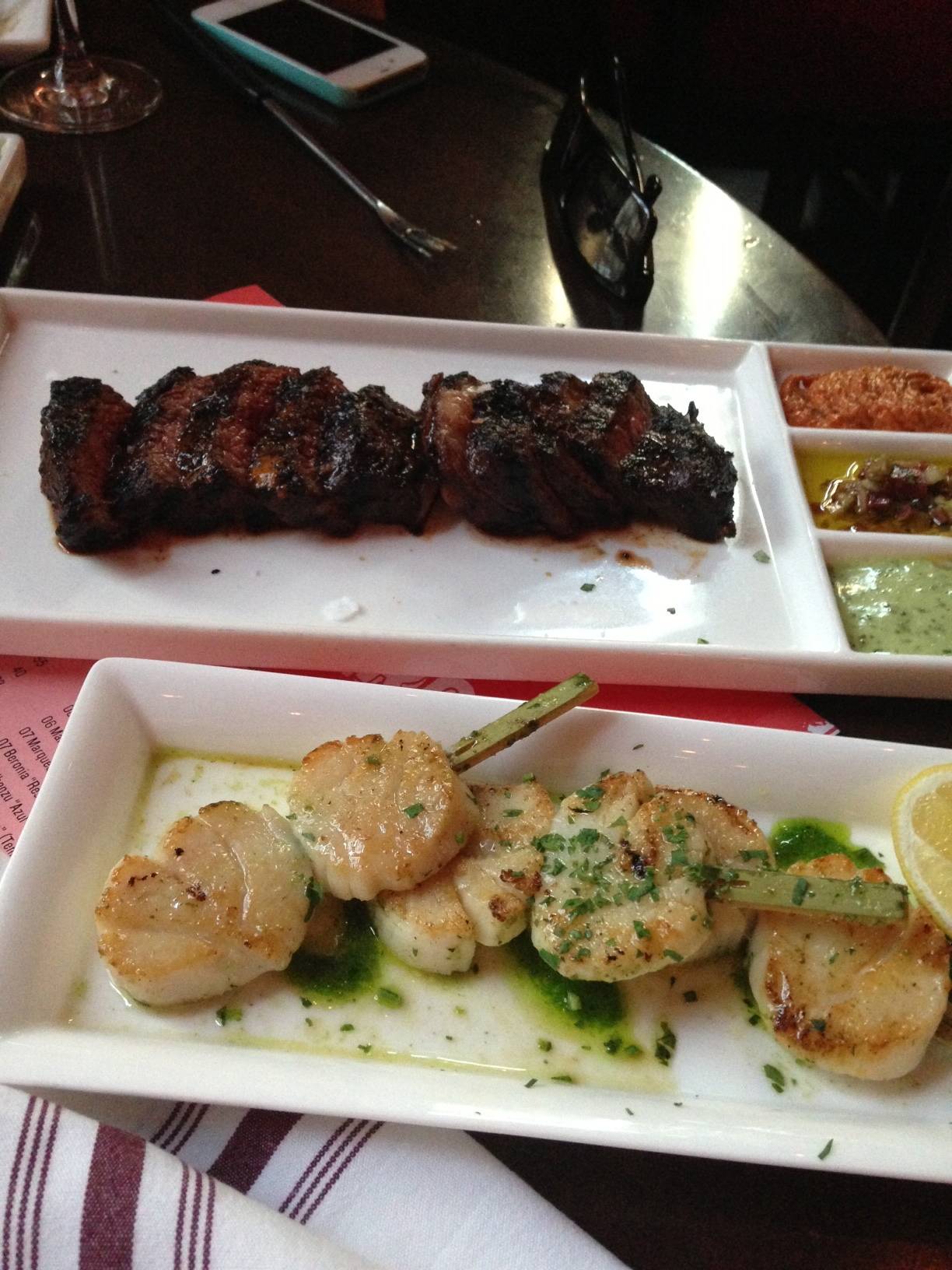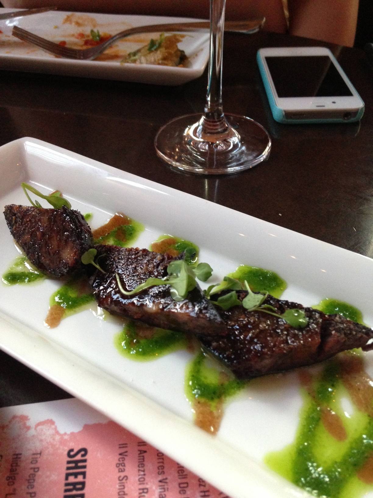 Every single dish that was brought out was at least very good, every single one, and most were absolutely amazing. From things that I knew were going to be great like the charcuterie, risotto, and bacon-wrapped dates to things I have never tried like rabbit pasta with brown sugar foam, blood sausage and the dish I said I wouldn’t try, lamb chops. I couldn’t believe how much I enjoyed the blood sausage (Chef Cory Morris had just gotten back from a trip to Spain and brought back this great olive oil that he poured over the blood sausage that made it even tastier) and lamb chops, it totally made me rethink my food philosophy. I would highly recommend Mercat a la Planxa for anyone who enjoys great food. Look no further than the accompanying photos to see all the incredible food. And the looks from my amateur iPhone photos will never do the food justice, I don’t want to ruin the surprise by telling you what it is, but the dessert dish is out of this world. To get a taste of all this for yourself, you have to make a reservation to Mercat today by clicking here.