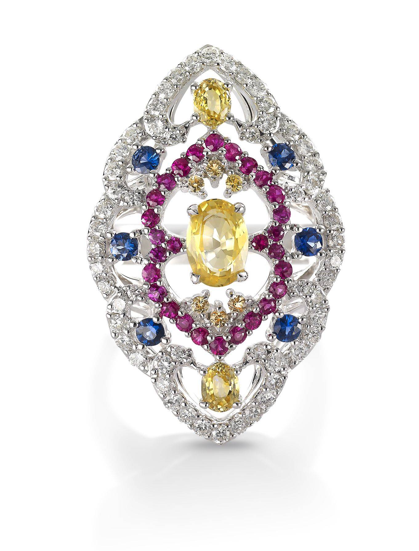 Each item from the collection is made in 18 carat white gold and set with diamonds, citrines, sapphires, tourmalines and peridots. Found in different combinations, the stones create mesmerizing juxtapositions of bright white, deep blue, dark green, warm red, pink-violet and golden yellow – all colors that recall those of a peacock’s plumage. “Admired and revered for thousands of years, peacocks remind us of the wonder and creativity of nature—boasting resplendent plumes of iridescent blue, gold, green, pink and crimson—all for the love of love,” said Fred Mouwad, of the brand’s Diamond Division. “Dainty, charming and alluringly romantic, the Peacock collection will captivate wearers and watchers alike with their unmistakable duende—a must have for any sophisticated jewelry collection.”