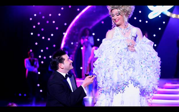Las Vegas’ longest-running headliner, Frank Marino, was surprised during his performance in Divas Las Vegas at The Quad on Tuesday night with a marriage proposal from his longtime partner, associate producer Alex Schechter.