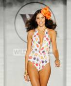 Wildfox, on the other hand, was held poolside at Soho Beach House. The invite-only presentation gathered the crème de la crème of Miami’s fashionable elite, including Haute-lister Brett Ratner. The youthful brand was clearly inspired by the 1970’s. Think big round sunnies and puffy beach hair. The models donned one pieces with the phrase “I’m really a mermaid,” and fruit-printed one and two pieces that elicited a standing ovation from the audience.