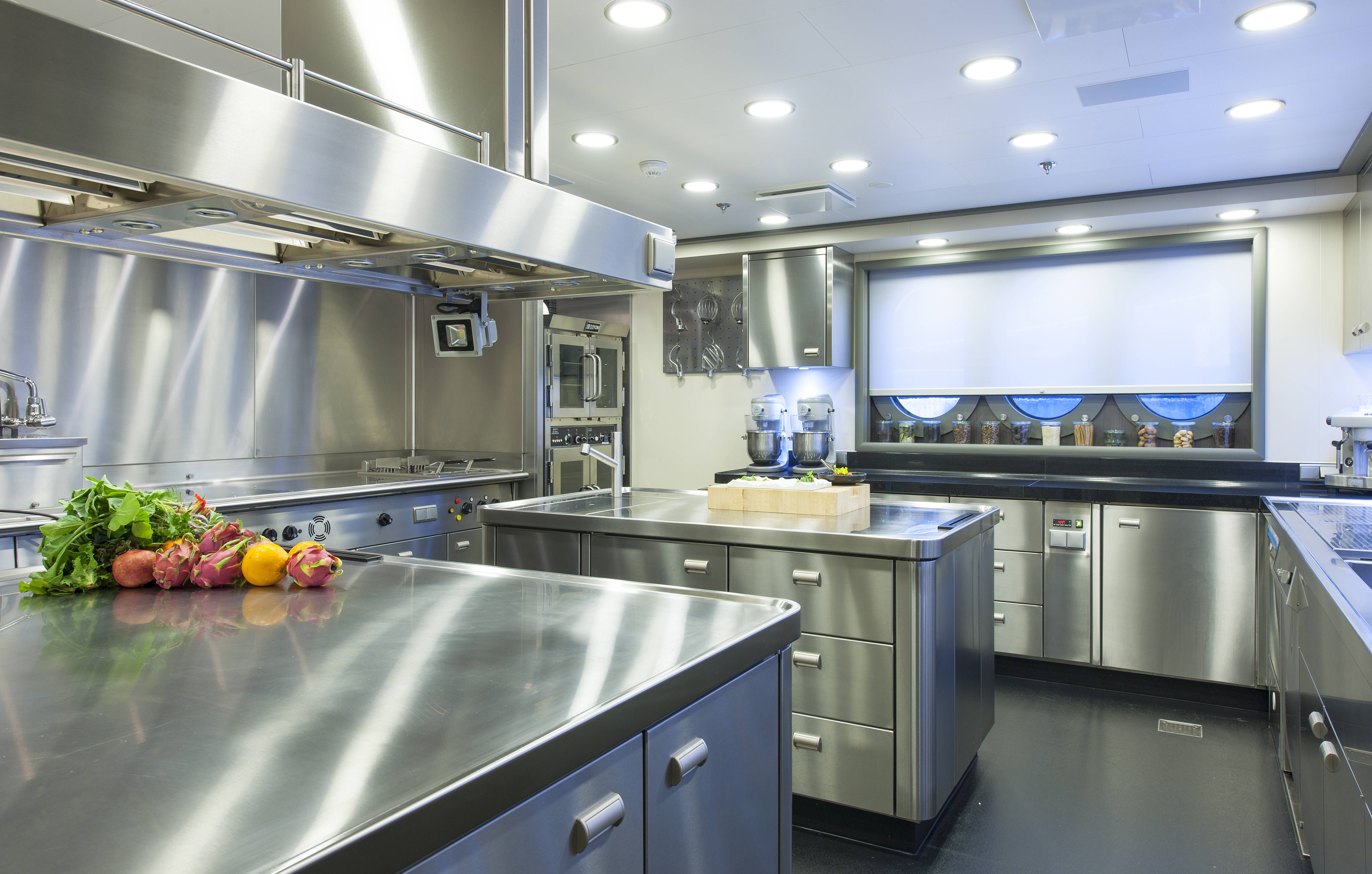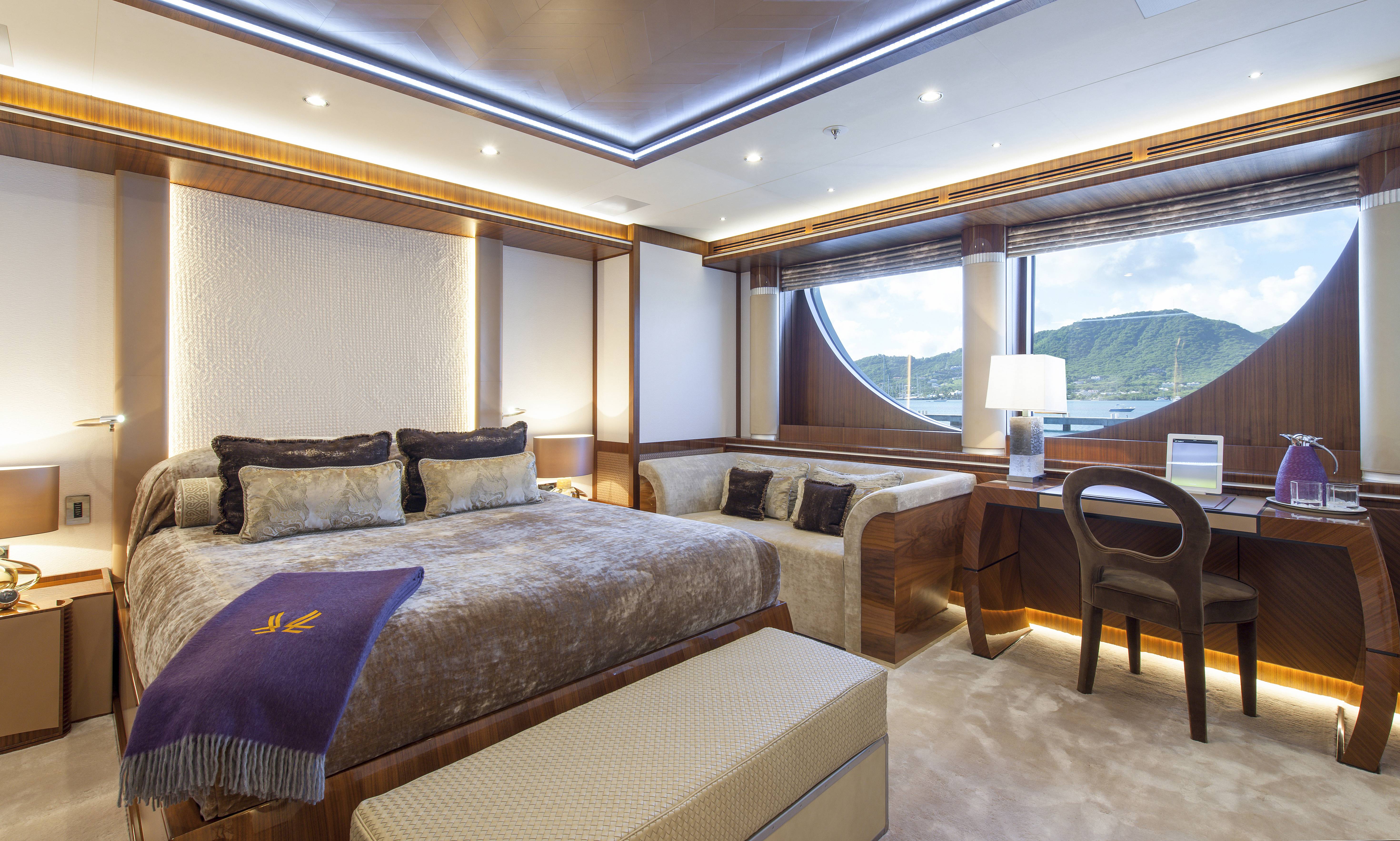 Below deck, Quattroelle is no less impressive. The luxury yacht features twin Caterpillar engines (named Greta and Juliette), low-emission engine-exhaust systems, HUG particle filters and soot burners, making her a fuel efficient vessel.