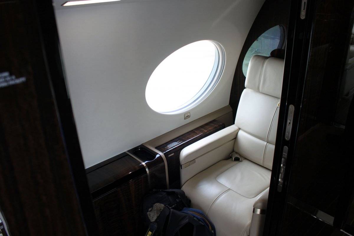 This jet has the tallest and widest cabin in its class, can climb all the way up to 51,000 ft., has a range over 8000 miles, a cabin with room for eight with big screen TV’s and massive seats, two Rolls-Royce engines, big cockpit windows, enhanced vision system for pilots and Synthetic Vision- Primary Flight Display.