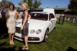 On Saturday evening, Four Seasons Hotel Silicon Valley and Bentley put on the classiest of tailgate parties. Elegantly dressed guests dined on Chef Marco Fossati’s selections of caviar and prosecco soaked strawberry canapes. Models wearing Palo Alto designer Camilla Olsen’s “cage” dresses served guests champagne from the “tails” of Bentley’s new Flying Spur, debuting that evening and GTC Convertible. The main event was a spectacle in its own right as guests enjoyed the fierce Olympic caliber Bentley Los Gatos & Bentley San Francisco Grand Prix. Guy Thomas, former Olympian in the 2004 Athens games won his second Grand Prix in a row at Menlo on Peterbilt, with the $40,000 stake.