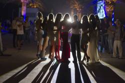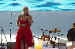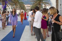 The next night guests arrived to Jetti One in the heart of Porto Montenegro, walking the blue carpet up to the venue. Misahara’s partner True Collection had a team of athletes in attendance who put on a spectacular jewelry heist skit, where James Bond (athlete Greg Minnaar) arrived with two beautiful models, only to have their jewels stolen by bandits on bikes (athletes Cedric Gracia and Josh Bryceland). The ‘thieves’ even escaped by diving into the sea where an escape boat awaited! However, Bond rushed after them by boat, defeating the bandits and returning the jewels. Meanwhile, another Bond arrived by parachuting down onto the jetti! Throughout the night guests mingled with models wearing the Adriatic jewels and dress in couture designs from Biljana Tipsarević.