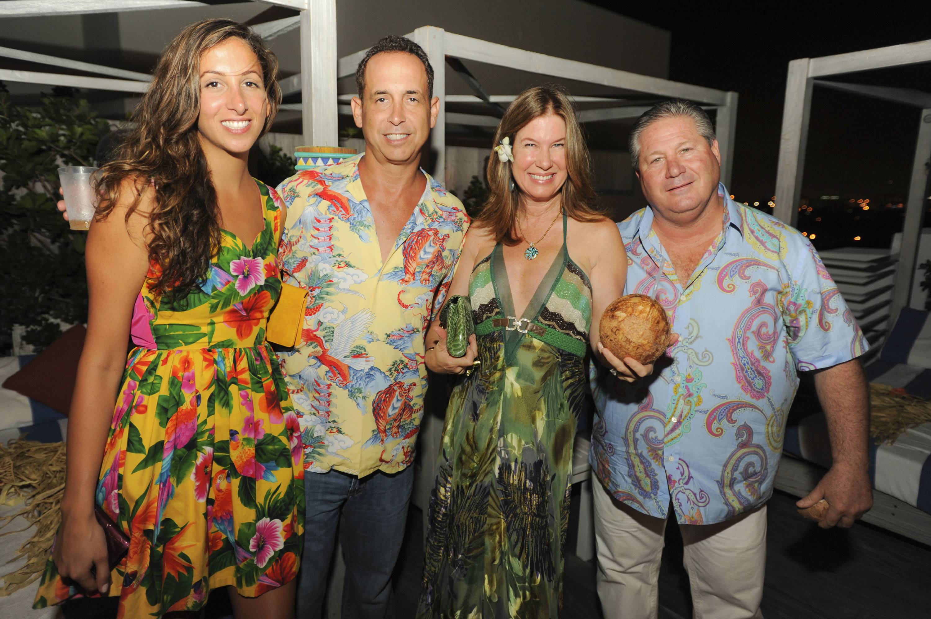 Tara Ink’s Nick D’Annunzio celebrated his birthday Saturday night at Ocho, Soho Beach House’s super sexy roof top. The weather was perfect for this popular Leo boy’s fete that drew quite a crowd. The theme was Hawaiian and everybody dressed the part with the help of leis and grass skirts. Hula dancers performed and cocktails were served out or fresh Coconut Cartel coconuts along with a unique fresh ginger-pinapple drink and of course, Ocho’s famous tacos. Guests included D’Annunzio’s longtime fiancee Tara Solomon, Dana and Gary Shear, Marcella and Daniel Novela and artist Carlos Betancourt.