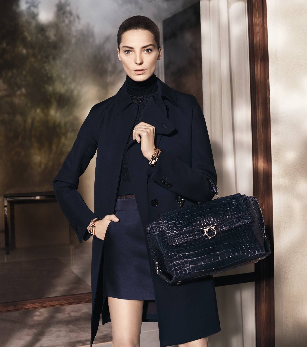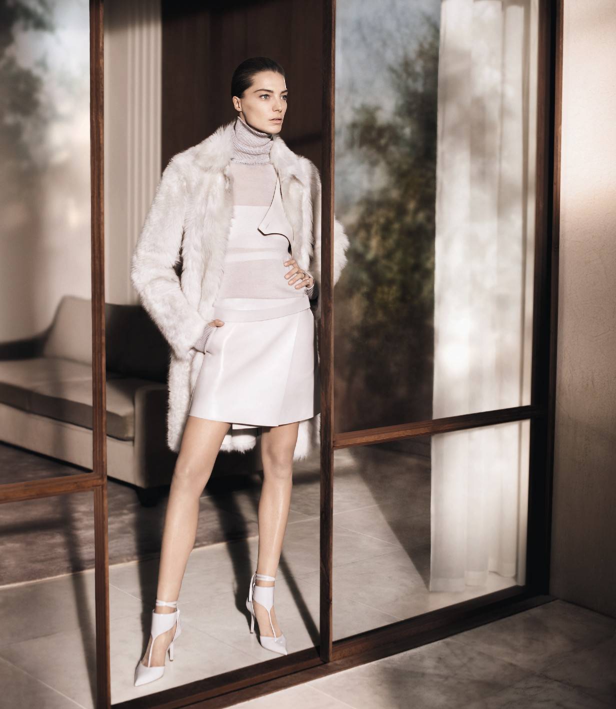 Shot by David Sims, Salvatore Ferramgamo’s Fall-Winter 2013 advertising campaign boasts modern architectural lines against a space radiant with natural light. The protagonists are Daria Werbowy and Tyson Ballou, models who are captured in a moment of time. Sims isolates the threshold between public and private, the plush interiors and the plein air of the lush garden surrounding the house creating a feeling of organic continuity