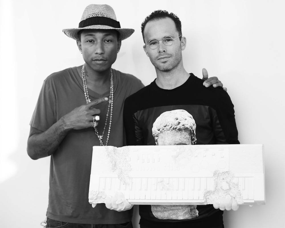 Last week in New York, Daniel Arsham unveiled his first collaboration with Pharrell Williams at The Standard in the East Village. For this project, Arsham created replicas of Pharrell’s keyboard and drum machine, an instrument important to the prolific musical artist and producer at the genesis of his career in the late 1980’s.