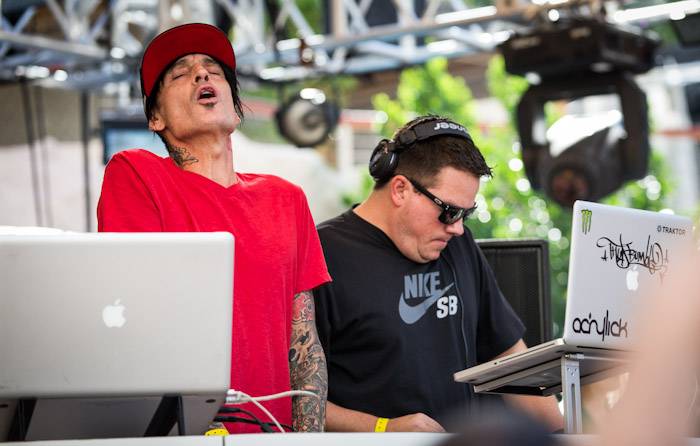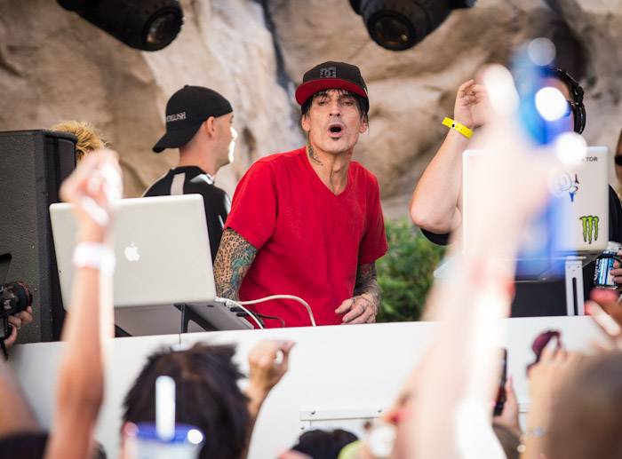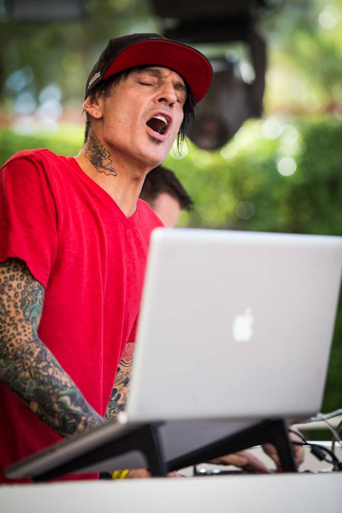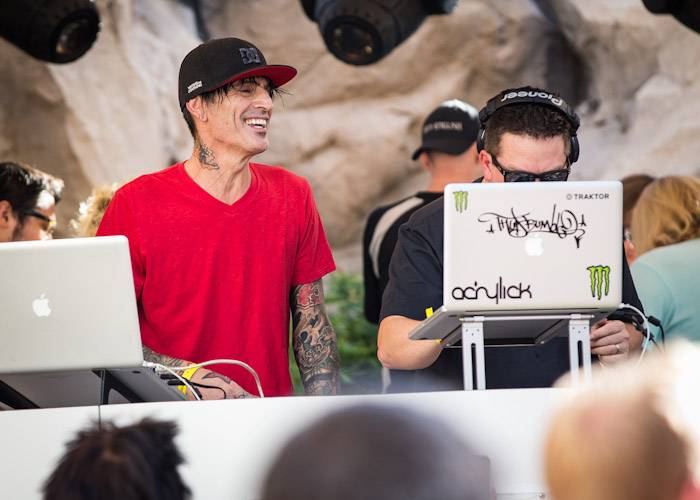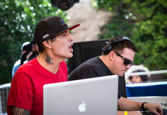 Rocker Tommy Lee and DJ Aero hit the stage at Body English Nightclub & Afterhours at the Hard Rock Hotel on Friday night for their dynamic, live DJ set. The duo spun a mix of electric and house music as partygoers danced into the early morning hours. Black Boots and DJ Pizzo also provided a soundtrack for the night’s party.