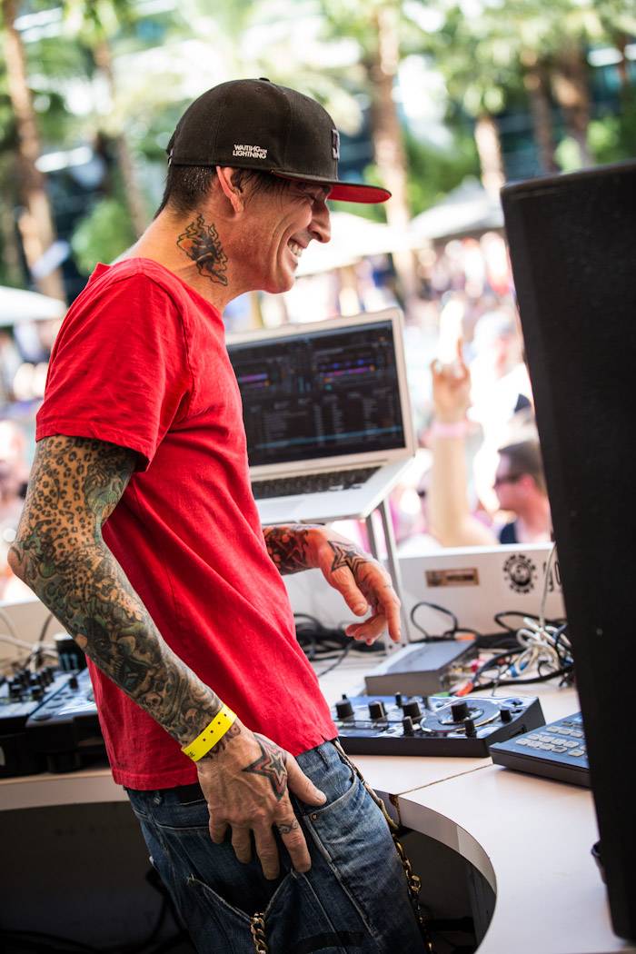 Lee was back on Sunday, when he was accompanied by DJ Aero on the poolside stage at Rehab. The Electro Mayhem pair turned up the noise as patrons celebrated at Las Vegas’ original dayclub. Resident DJs Richard Beynon, DJ Shift and DJ Wellman were also there spinning today’s best hits.