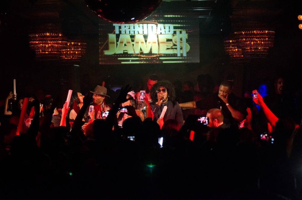Trinidad Jame$ hosted a pre-fight party at Lavo at the Palazzo on Friday night. The rapper first fueled up with friends on Italian specialties including crispy calamari, chicken parmigiano, Kobe meatballs and penne ala vodka before making his way into the nightclub. Jame$ then took to the stage for a special performance of some of his biggest hits including the popular club anthem “All Gold Everything.”