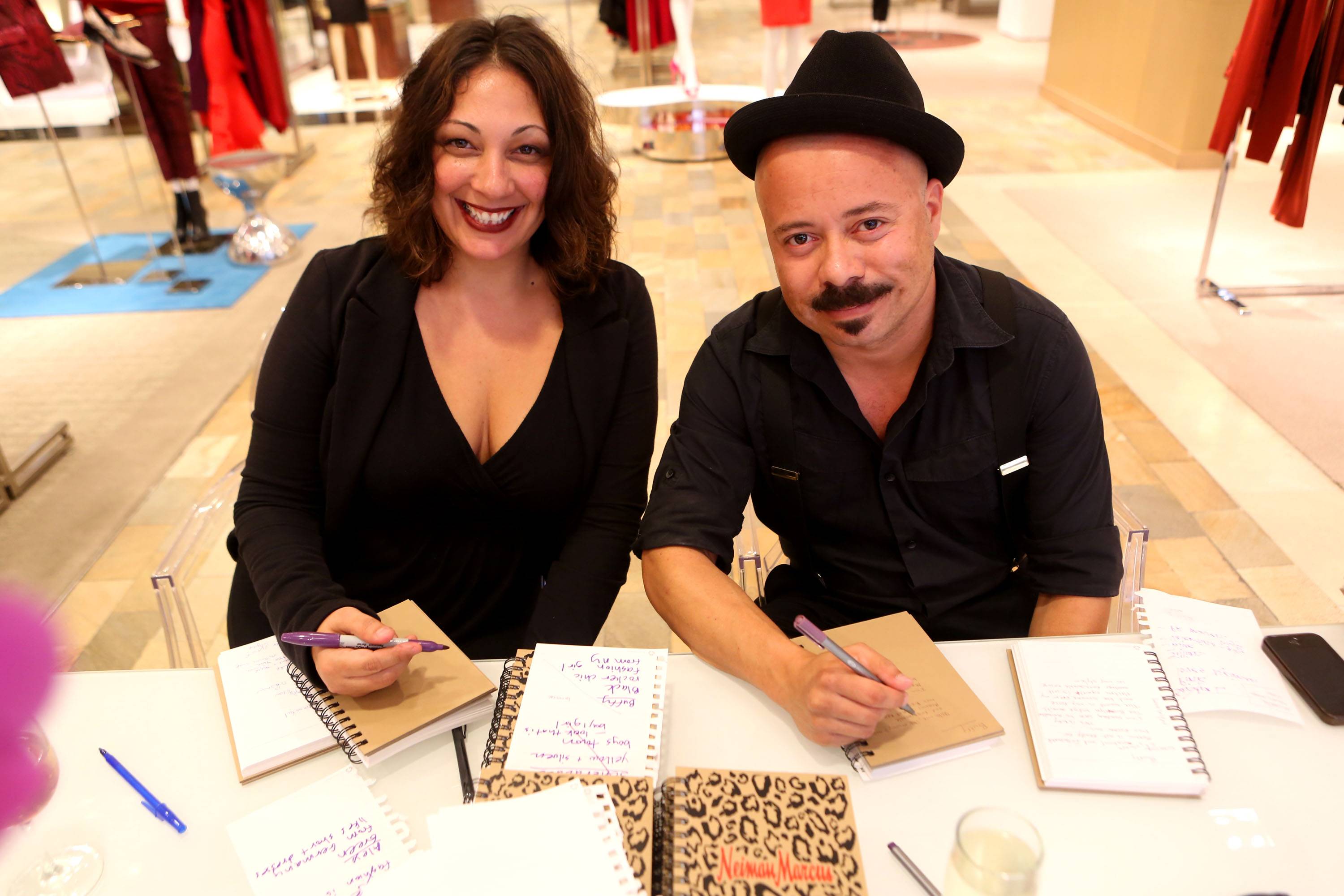The looks included animal magnetism, rocker chic, the classic combination of black & white, and the two hottest colors seen on all the fashion runways, purple and red. Styled by Danny Santiago and David Fittin, the models graced the rectangular shaped runway as 3 over-sized TV monitors flashing the hottest runway images played as a backdrop to the event. The world of high-fashion and art collided as those in attendance received a personalized poem incorporating one of the Neiman Marcus by the duo of poets on hand. Guests enjoyed tantalizing brie tartlets, signature crab cakes, bombay chicken salad served in martini glasses, caprese flat bread, and refreshing cocktails.
