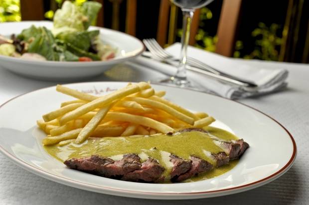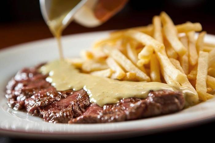 Those of us who have spent any time at all in Paris are familiar with L’Entrecôte, the fabulous French mono-dish brasseries that serve only their signature dish of steak-frites, special sauce and salad. There are a handful of L’Entrecôte restaurants around Paris and now the world and as much time is spent debating over which is the original (hint: it’s the one in Port Mailliot) as what is in their secret 21-ingredient sauce. In Paris, locations operating under the name “la Relais de l’Entrecôte” or “Relais de Venise,” are owned by decedents of the Gineste de Saurs family who pioneered the concept in 1959, but the quality can vary greatly.