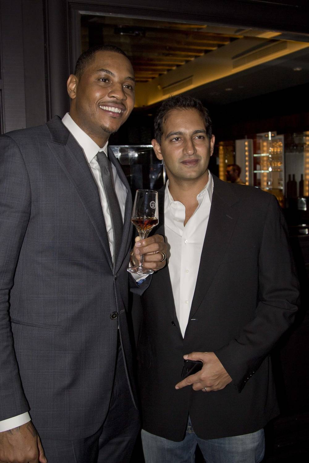 Guests were treated to a 5-course meal that included steak, lobster, and salmon. The evening wrapped up with a special toast of 100-year-old Louis XIII cognac (although sadly Melo, whose New York Knicks are in season, could only pose with the glass and not drink any!). The toast was led by Yves de Launay, Vice President of Prestige Brands at Rémy Cointreau USA, who congratulated Melo on his charitable work and success.