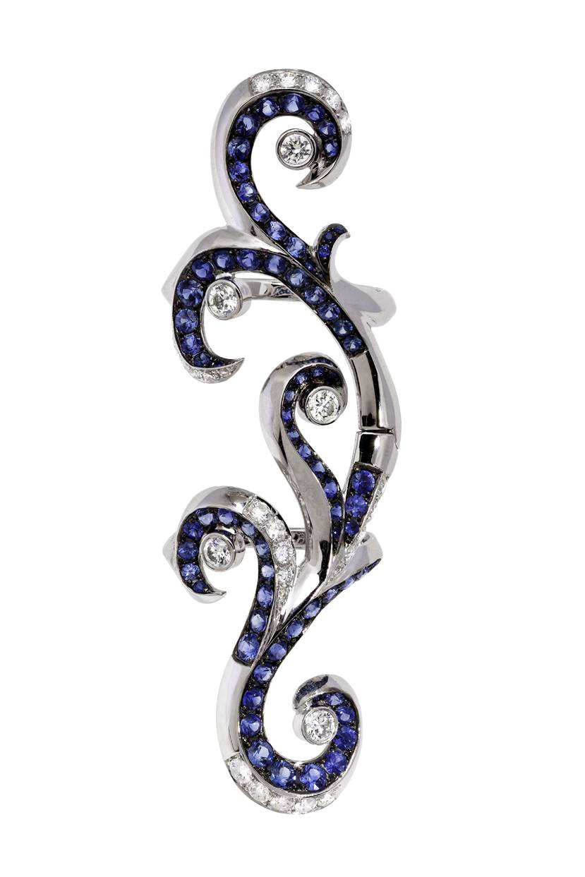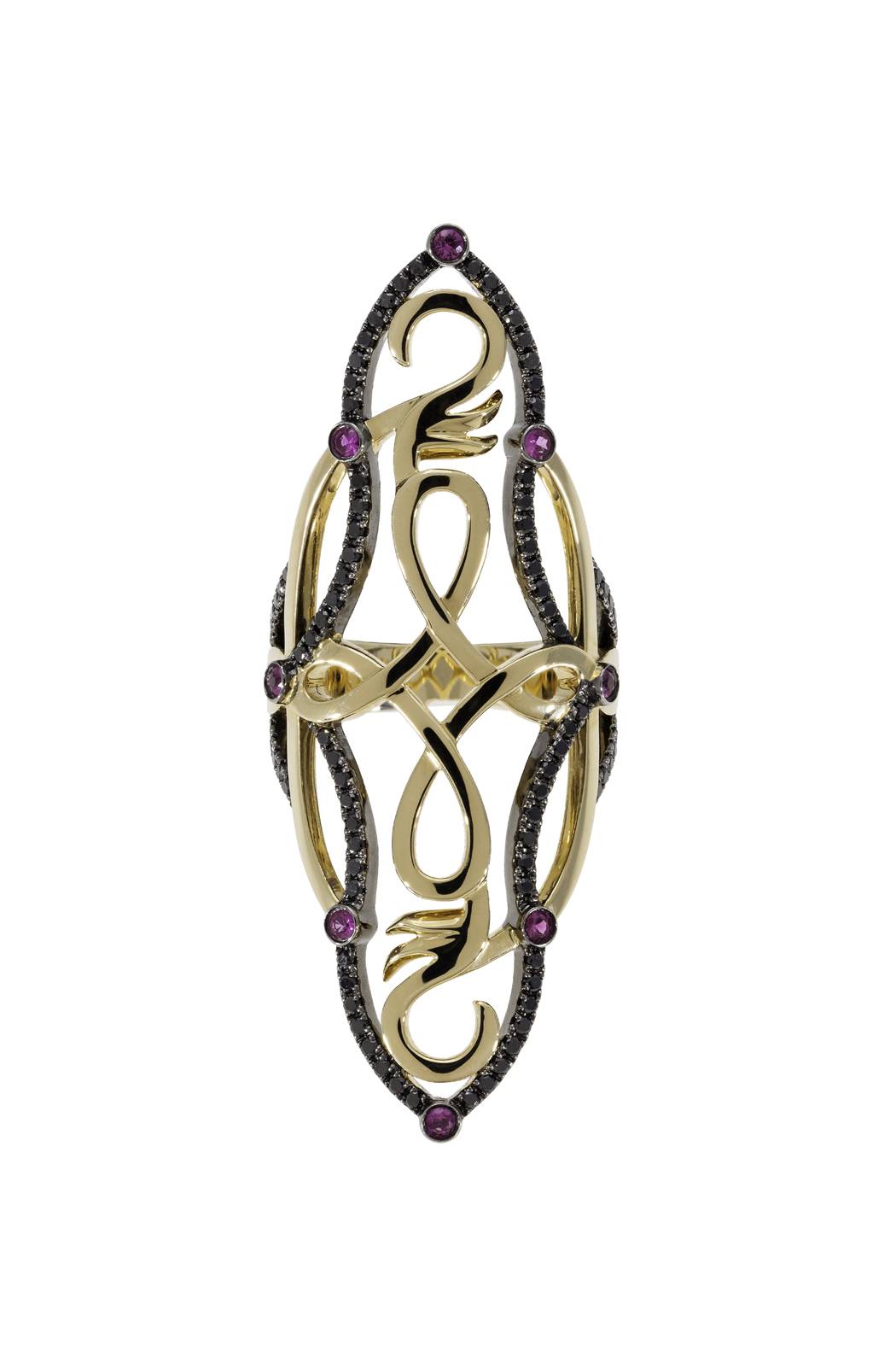 While there are a total of 11 different collections in her line, there is a spiritual tie that binds them together. Take, for example, the Amaneé collection, a series of bracelets that trace the lines of the hand according to Indian Palmistry. Or the Jaipur collection, which employs magnets hidden behind diamonds which are placed on particular points on the body according to ancient Ayurveda. All of them evoke Orcini’s world travels and time as costume and fashion designer in Rome, Prague and Vienna.