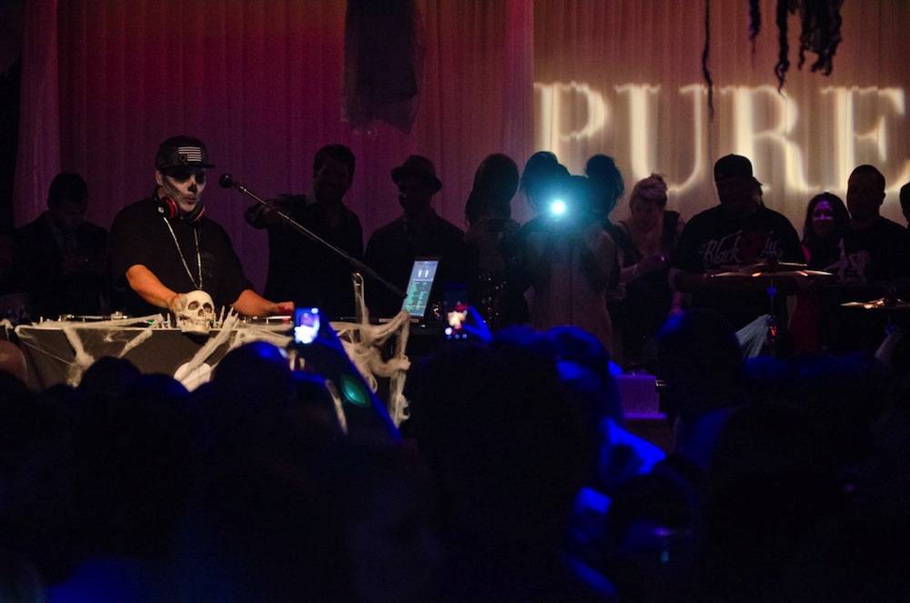 Pure Nightclub at Caesars Palace was a sight to see when the nightclub transformed into a chilling party destination and had the Halloween festivities in full effect on Saturday night. Blink-182’s Travis Barker took over the nightspot alongside DJ icon Mix Master Mike and put on a performance.