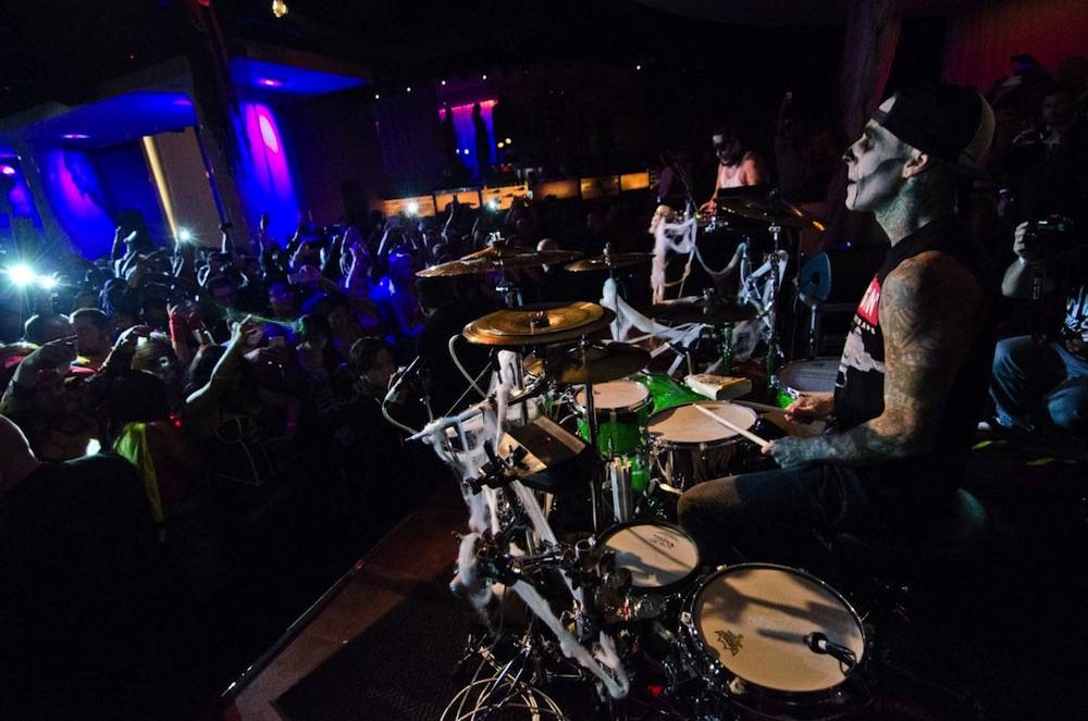 Kicking off the performance, Mix Master Mike manned the decks and got the party started as he addressed the crowd. Shortly after, Barker hopped on the drums as he joined the spinning legend and had the entire nightspot on their feet. Full of energy and feeding off the excitement from the crowd, the drumming sensation and turntable legend had fans dancing and singing along as they put on a spine-tingling set filled with mash-ups of popular hits from a variety of genres including Top 40, hip-hop, punk rock and more.