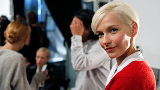 - Another notable trend among most designers is the use of cheerful lip color.