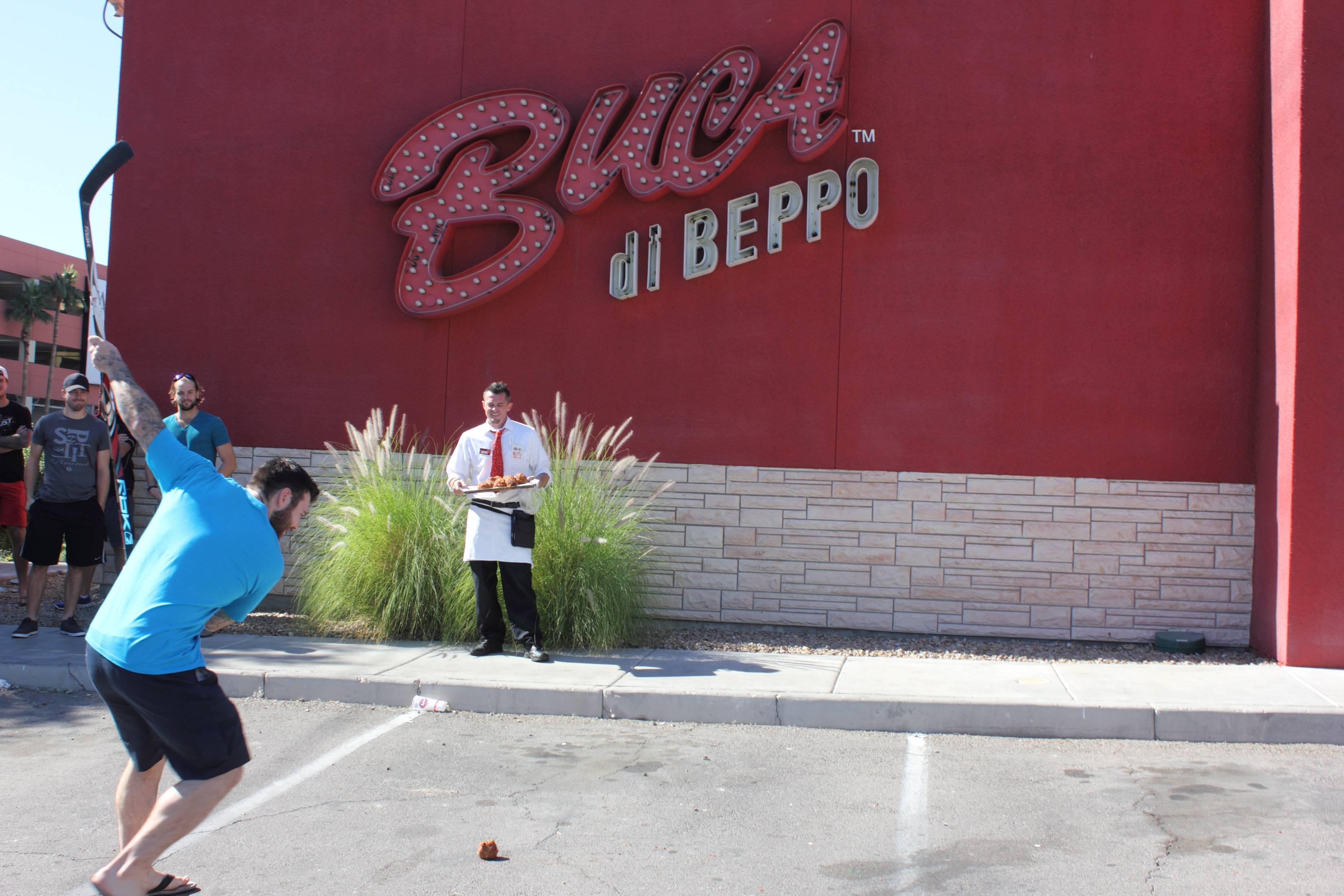 In celebration of World Pasta Day on Friday, the Las Vegas Wranglers headed out to Buca di Beppo for the ultimate competition. The teammates faced off in a spaghetti eating contest featuring Buca’s signature spaghetti marinara, then took their chances in a meatball slap shot competition, using Buca’s famous 1/2 pound meatballs.
