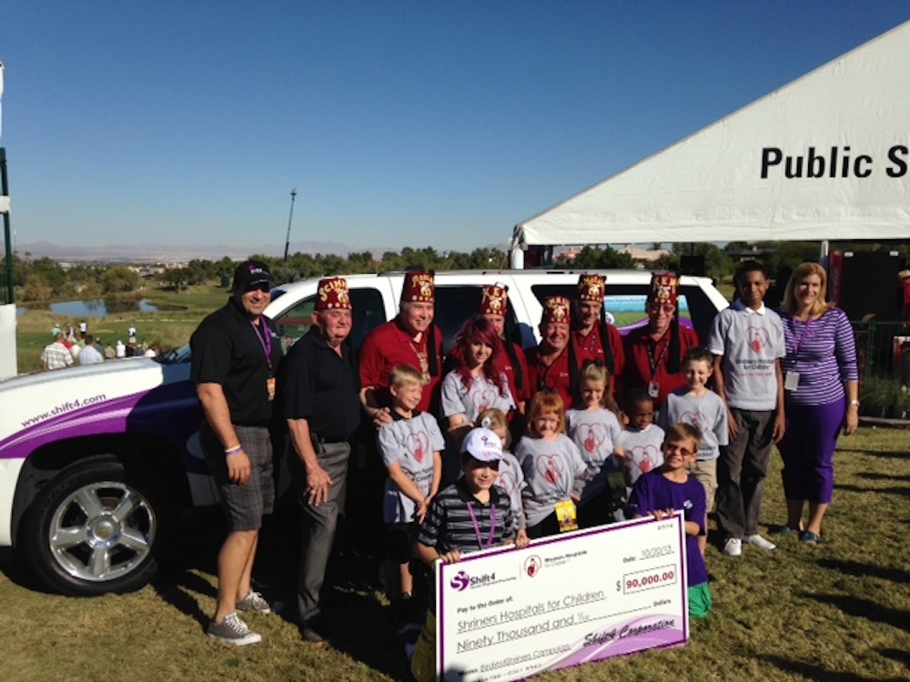 Gathering outside the Public Safety Appreciation Station, Shift4 Corporation presented Shriners Hospitals for Children representatives and patients $90,000 in charitable funds from the Birdies4Shriners fundraising initiative. With every birdie, eagle and ace from PGA Tour professionals Ryan Moore and Scott Piercy during professional play, the Las Vegas-based agency donates funds to the hospitals in support of their mission. To date, the campaign has raised $165,000.