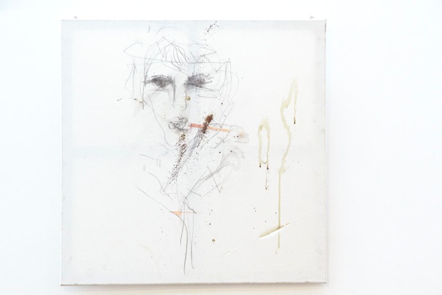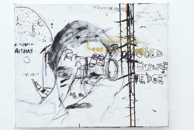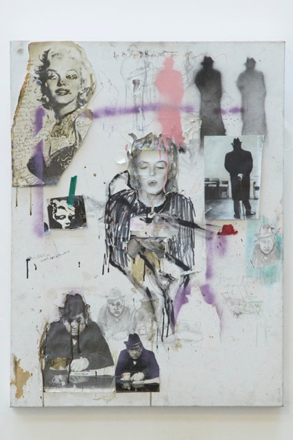He takes his inspiration from Albion, his hometown, Paris, where he lives and works now, Saint Jean and the Apocalypse, Dorian Gray, among many others different subjects. He is influenced by his own destiny. His works are violent, provocative, free, and poetic in the same time. Intertextuality could be the commond thread of his work and his life: in his musique, in his writing, and in his paintings, drawings. He is haunted by the death of iconic idols such like Marilyn Monroe and Amy Winehouse. One of his autoportraits figures himself without his head like if he was a ghost. Chaos is at the center of his work and elements, letters spring up his work.